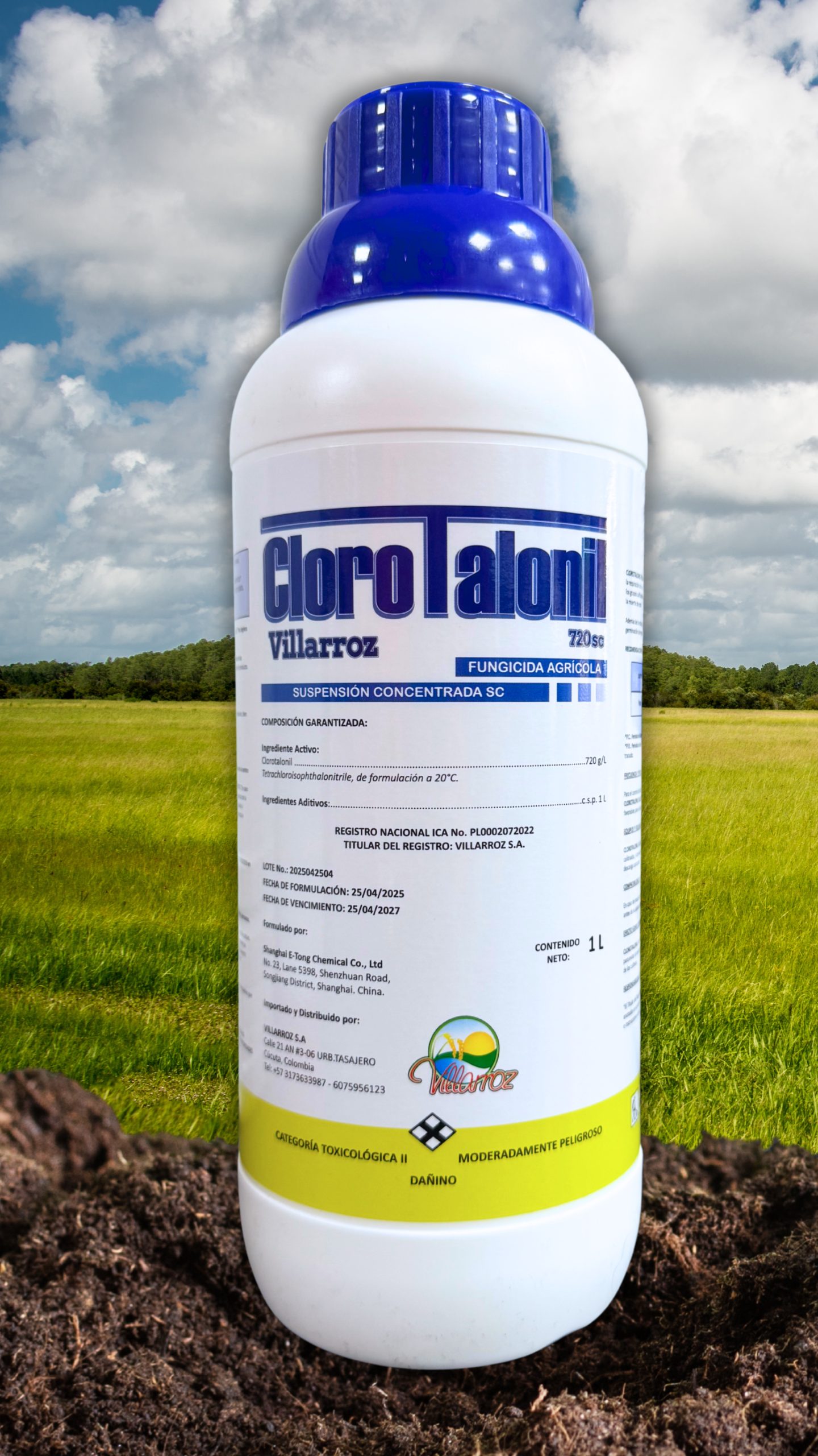 Fungicida agrícola de amplio espectro con acción multi-sitio por contacto, diseñado para prevenir eficazmente enfermedades causadas por hongos en cultivos como la papa. Gracias a su ingrediente activo, clorotalonil al 720 g/L, interfiere la respiración celular del hongo al desactivar enzimas clave, lo que conduce a su muerte antes de que cause daño severo en el cultivo.